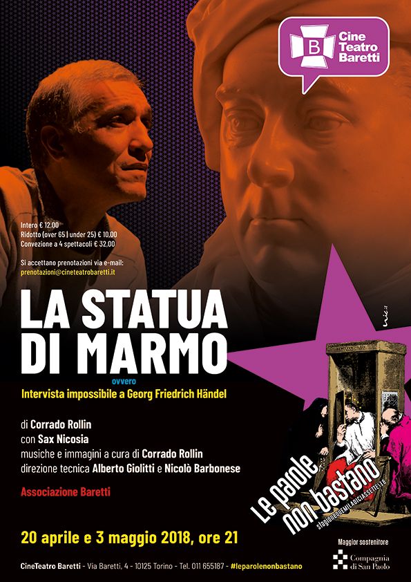 Per voce recitante, soprano, clavicembalo, violoncello (o videoproiezioni) e un intervistatore (Saluzzo, Antico Palazzo comunale, 6 settembre 2013; Torino, Palazzo Barolo, 24 novembre 2014; Mondovì, Academia Montis Regalis, 27 novembre 2015; Torino, Teatro Baretti, 20 aprile e 3 maggio 2018).